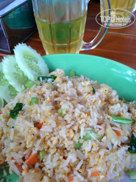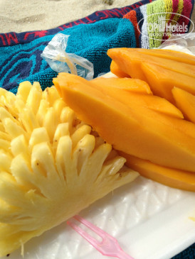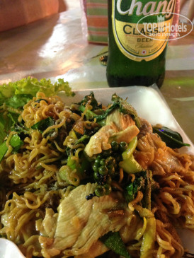 До пляжа 5 мин. 2 лежака с зонтиком 200батт на день.