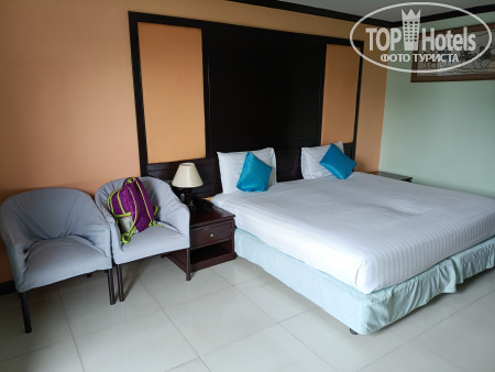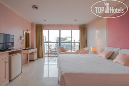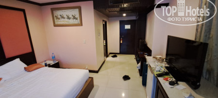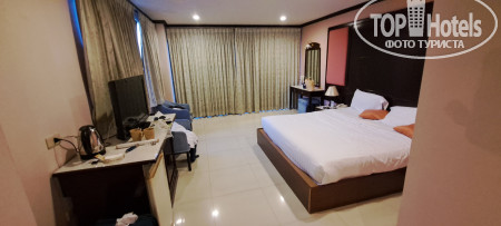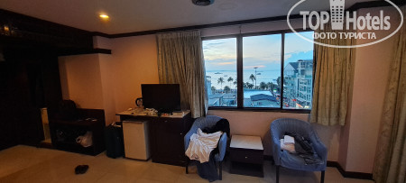 Расположение отеля прекрасное - располагается практически на первой линии Центральной части города Паттайя. Рядом Marina Festival и Terminal 21, множество магазинчиков и массажных салонов. Сам отель уставший, жили на 7 этаже. Когда зашли в первый раз - я была в шоке: ужасная сырость (за время нашего проживания все просохло, так как мы практически не выключали кондиционер), старая потрепанная мебель, на дверях ванной отходят филенки, темные шторы порваны, белье на кровати хотя и чистое, но с дырами. Блок кондиционера стоит на балконе и при включенном кондее громко шумит.
