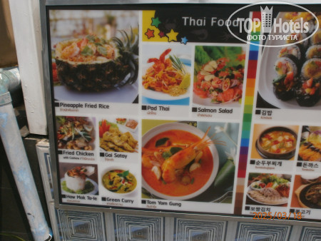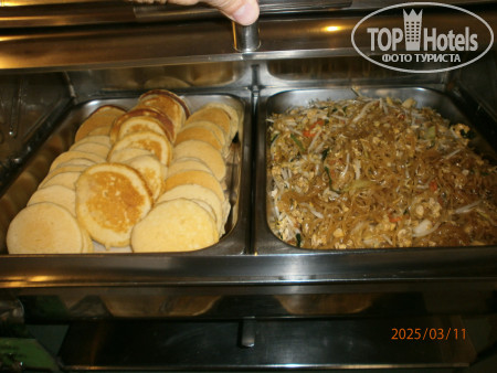Завтраки в отеле с 6.30 до 10 утра. Не знаем как кому, но мы считаем, что вполне приличные. В меню входят 2 вида супа, яичница, глазунья, бекон, рис, рис с овощами, тушеная курица с овощами, пад тай, фрукты-овощи, чай-кофе-вода-сок, масло, джем. Согласитесь, голодными трудно остаться. Если кому не хватает, то рядом с отелем расположился небольшой ресторанчик. Мы же, уже по традиции, на обед и ужин ходили в в фуд-корт Central Marina на второй пляжной.
