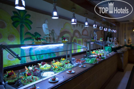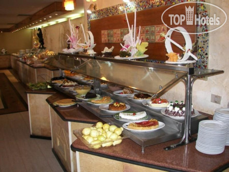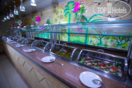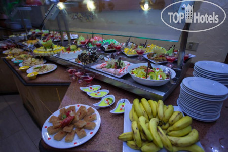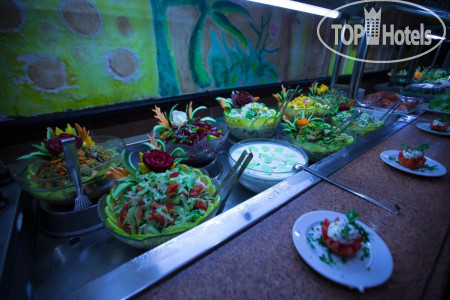 Столовая: Столовая в этом отеле это отдельный геморрой! Грязные раздачи, липкие полы, столы и барные стойки, отсутствие выбора еды (а иногда и самой  еды, только какие-то ошметки), льда и нормальных кружек и стаканов. Официанты молодцы! Стараются! На баре наглые бармены, у которых для не местных НИКОГДА НИЧЕГО НЕТ! Ни льда, ни бутилированных напитков, заявленных в концепции. Обед и ужин однообразные. Совсем одинаковые. Десерты вроде как разнообразные, судя по количеству тарелок, но мне никогда не доставалось. Причину напишу позже. Салаты полная фигня, сделанные по принципу "я его слепила из того, что было". Завтрак тоже однообразный, но достаточно вкусный.