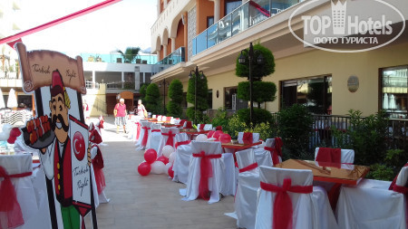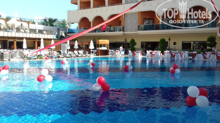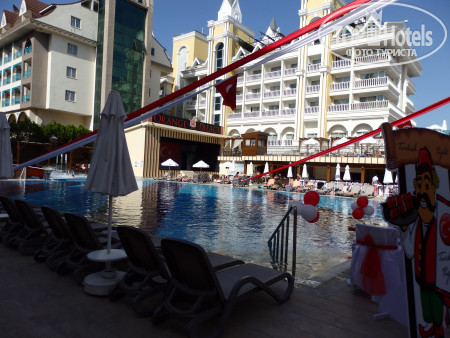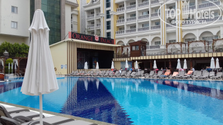 Всем доброго времени суток 😊 Немного об отдыхе в отеле Оранж палас. Дорога от аэропорта занимает 1,5 часа, наш отель был пятый. По приезду заселение прошло быстро, заполнили анкету, получили браслеты и карточки от номеров. Сразу оговорюсь, отель заточен чисто под немцев, возвратная категория в основном 55+))) Персонал общается на немецком, английский и русский с трудом. Наш номер был на втором этаже. В номере всё необходимое было, номер комфортный, уборка хорошая, бар пополнялся ежедневно. Питание в основном ресторане приличное, девочки официантки большие молодцы, отлично обслуживают, чего не скажешь про лиц мужского пола ( обслуживали исключительно немецкий контингент). Очень понравилось , что в отеле качественные напитки, соки в пачках, лимонады, минералка в индивидуальных упаковках, йогурт в бутылке. Также был большой выбор мороженого. Территория: у отеля её нет от слова совсем. Бассейн, есть пара горок, столики и небольшая сцена. С детьми и подростками здесь делать нечего.Пляж; до пляжа ходит электрокар, что очень удобно, ехать 3 минуты.Пляж отличный, море 🌊 шикарное, удобные лежаки. Минус то, что нет зоны для курящих, курят кругом. Лежаков всегда хватало, в любое время. Ресторан на пляже , можно пообедать, заказать по меню. Было бы отлично добавить в ресторанную зону холодильник с мороженым. Обслуживание в ресторане на пляже отличное. В целом отдыхом остались довольны, шикарное тёплое Средиземное море и красивейший закат.