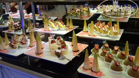 Приехали в отель в 7.10, заселились, сразу на ужин, который одновременно был новогодним банкетом. Оказалось, в отеле 160 человек, мы, три поляка, остальные немцы! Информация с рецепции. /// За Столы посадили по 8 человек, с нами сидели бездетная незамужняя полячка учительница, немного говорящая по-русски. супружеская пара со стажем 46 лет, сказали, что немцы, живут в Швейцарии. Муж понимал и что-то говорил по-русски, жена только по-немецки, у обоих английский нулевой уровень. А немецкий нулевой у меня)))! новогоднее меню длинное, но до 11 управились. Приглашённая вокально-инструментальная группа, восточные танцы (у двух из трёх танцовщиц уровень самодеятельности) /// Аниматор провёл лотерею по 10 евро, вручив некоторым сумки отеля, дешевые стаканы. Аниматор один раз провёл как ди-джей диско. Оторвались часок в трио с пришедшим поляком. А так анимация в 21 дартс или бинго. Предлагает поехать в клуб, поляк ездил, говорит человек 200 на диско, русские женщины. /// Аптекарь ближайшей аптеки занимается изготовлением светильников ручной работы- Blbndesigny /// Главный менеджер ресторана встречает на входе, говорит на немецком, позже нас приветствовал на русском. Английский у него на минимуме. официанты очень услужливы, быстро убираются, предлагают напитки, пытаются развлечь разговором. Только допьёшь, уже стоит, хватает пустой стакан/ тарелку, предлагает принести выпить сок, чай или стоит с бутылкой. Через день оставляли доллар. /// Раз в неделю открывают итальянский а-ля карт. Вкусная сушеная вяленая помидора. Мы не ожидали ничего поразительного итальянского, просто приятный вечер в другой обстановке. Понравилось, что немцы все сидели, активно общались, официанты подавали блюда не торопясь, да и мы не спешили. Перед десертом вышли размять ноги на улицу, понаблюдали через огромные окна, набрали в Легкие пьянящий свежий воздух, в темноте закусили росшим здесь же кумкватом. /// 4 января, 53 Номера, осталось только 84 человека. 5го не открыли бар на пляже и туалеты. Шезлонги на песке, столики под навесом и интернет в доступе. Сидели, любовались Высокой волной, иногда в сопровождении проходящих дождей. /// Небольшой уютный тренажёрный зал, прекрасный большой тёплый бассейн, с открывающимися окнами, свежий воздух свободы! Никаких детей, культурный, всегда и везде здоровающиеся немцы. /// /// На входе утром имбирный чай в большой емкости, одинаковый набор булочек, овощей ежедневно. Обед не разнообразный, рыба часто макрель. На ужин выбор мяса большой, рыба на гриле форель, сибас чередовались. Салаты помидоров, огурцы свежие. На завтрак попался заветренный блин вчерашний, иногда жёсткое мясо. Я потихоньку забирала с собой, скармливала кошкам. /// территория небольшая, с горками, бассейном, присадками деревьев, особенно понравились кумкват, аллея с арками, обвитыми зеленью, сценой, двухуровневой террасой. Утром уборщицы убирают всю, даже где и не ходит народ. /// При покупке в отеле номер стоит 56 евро на двоих///