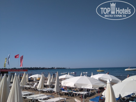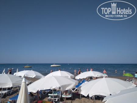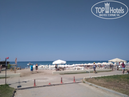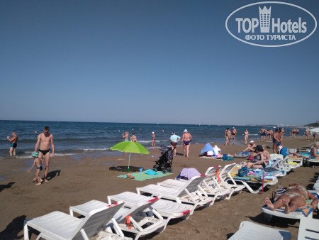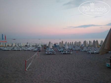 ПЛЯЖ - его, можно сказать нет. Они арендуют маленький кусочек у какого-то другого отеля. Лежаки стоят впритык, все старые, ушатанные, туалета нет, переодевалок нет, бара нет - ничего нет.