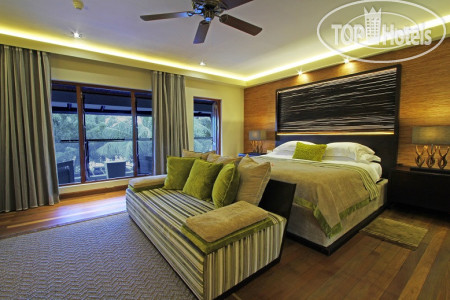 Постель была сразу украшена цветами с надписью с юбилеем свадьбы, домик просторный, но не шибко красивый, коричневое дерево я не люблю, но другим мб будет нормально, удобнейшпя огромная кровать, знаменитый душ под открытым небом и гель, шампунь, кондиционер l' Occitain высочайшего качества, вау.