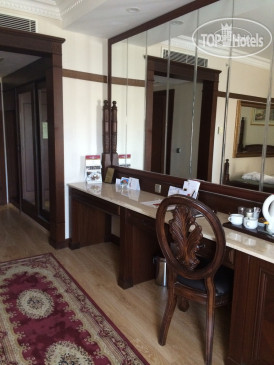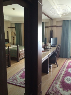 Номера просто великолепные, при чем в прошлом году у нас номера были с доплатами за частичный вид на море (по факту с видом на подпорную стену соседнего отеля). В этом году, был обычный вид на город, при чем вечером была просто необыкновенная красота. Шум был от анимации соседнего отеля, но он прекращался в 11 часов. В номере есть все необходимое, пополнение минибара ежедневное. Уборка нормальная каждый день, при чем через день, горничные крутили нам лебедей.