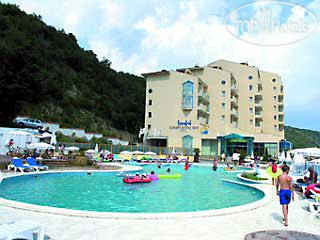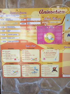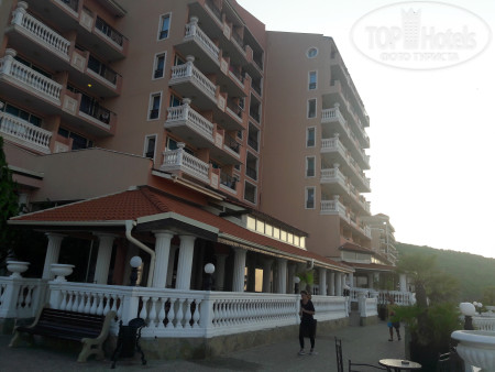 Позитив: З номеру вигляд на море, берег в 50 метрах, запах моря чути в номері. Можна було їсти в їдальні якщо були місця на вулиці ( терасі). Територія велика. Відпочинок сімейний у нас двоє дітей віком 6 і 0,6), було де погуляти з коляскою. Тихо!!! Порівняно з сонячним берегом де ми відпочивали, дуже тихо. На території є Італійський ресторан де смачно готують, до нього треба записуватись у адміністратора. Так як ми були 8 ночей як нам сказали його можна відвідати два рази якщо сім ночей то вже один раз.