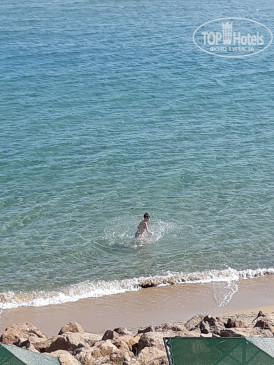 Пляж у гостиницы свой. Шезлонги и зонты бесплатные. Немного опасный спуск к воде. Если лень обходить каменную наброску из больших валунов, то можно за 15-20 секунд спуститься к воде прямо по камням. Для тех кто боится или очень сильно дорожит костями, есть спуск к воде в обход (метров 20 вправо от террасы -метров 50 влево от террасы). Мы спускались по валунам без каких-либо проблем. Очень порадовала кухня. Всё было очень вкусно, несмотря на относительно небольшое разнообразие, находили себе блюда по вкусу и веганы, и мясоеды и любители рыбных блюд. За натуральным кофе ( а не бодяжной бурдой) нужно идти в Лобби-Бар, равно как и за спиртными напитками и коктейлями. Работал бар с 10 утра и до 12 ночи. Удивило качество пива, оно как минимум тянет на начальное Чешское или среднее Румынское. Несколько раз ходили в аквапарк. Он расположен на территории комплекса, примерно в 400 метрах от отеля, вход для постояльцев - бесплатный. Работали не все горки, но для дозы веселья и адреналина - хватает вполне. На территории аквапарка - бесплатное мороженное, напитки и выпечка "Fornetti". Собираясь в дорогу, мы подошли к девочкам работающим в киоске с выпечкой, и нам без лишних вопросов собрали в дорогу несколько пакетов вкусностей.