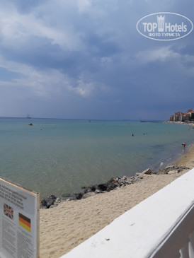 Мы с друзьями отдыхали с 30.08.2020 по 7.09.2020. Пока все прятались от коронавируса по своим квартирам, мы решились на поездку на море. На пляжах пусто и безлюдно, по вечерам чернота в окнах неработающих гостиниц, а таких было процентов 70. Отель не новый, это бросается в глаза практически сразу. В номе было чисто, санузел чистый, без плесени, слава Богу работало всё исправно, в том числе и кондиционер. Персонал приветливый и услужливый, кроме некоторых местных товарищей, обслуживающих напитки и гриль в столовой. Полотенца менялись ежедневно. Постельное - по желанию клиента ( у нас без всякой просьбы поменяли раза 3-4 за 8 дней). Хотя сразу оговорюсь, что мы пару раз оставили девочкам по 5 лев (около 3$). За свои деньги (нам вышло около 290 Евро, с учётом покупки путевки непосредственно за неделю перед выездом) вполне пристойная гостиница. Все номера выходят к морю, вид потрясающий + запах моря + шум прибоя. Море теплое и чистое. Пляж начинается буквально от террасы. Волны бьются о валуны почти под балконами.