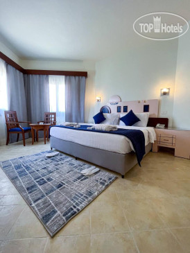 Отдыхали во второй раз в Nubian Island парой в сентябре 2025г. Отпуск выбрали на годовщину свадьбы. Предъявили на ресепшен копию св-ва о браке и получили поздравительный бонус от отеля в виде огромного торта, тарелки с фруктами и набора прохладительных напитков. Спасибо, было приятно! Заселение прошло очень быстро, практически не ждали, денежку в этот раз не просили. Бронировали бунгало, в него и заселились. Оно аналогичное прошлогоднему, места достаточно, шумоизоляция хорошая, кондей работает даже чересчур хорошо, есть чайник, чай-кофе-сахар, сейф, вода бутылированная, полный набор полотенец, набор мыльных одноразовых принадлежностей, фен, шапочка для душа, в душе выдвижная веревка для сушки белья, нитки-иголки, губка для обуви, несколько вешалок (все как везде). Халатов-тапочек нет. Уборка номеров нормальная, полотенца меняют, если их бросить на пол, пляжные полотенца меняют по звонку на ресепшен хоть несколько раз в день. Погода была жаркая, температура воздуха 38-40, воды в море 29, в бассейнах 28. На море лучше брать коралки, снорклинг с пирса открывали после обеда обычно, поэтому до обеда или лежали у бассейна или на пляже у моря, места всегда были свободные, даже если прийти после 10. В дайвинг центре можно купить урок дайвинга, ныряют с пирса, там же где и все плавают. Мы брали большую экскурсию каньоны-джипы-квадрики-верблюды-морская прогулка-дайвинг-снорклинг (Затерянный мир). Нам все понравилось, но по времени с 6 утра до 9 вечера, нужно быть готовым к долгой поездке на автобусе. В баре у моря напитки алкогольные и безалкогольные, мороженое в ассортименте (шоколад, ваниль, манго). По питанию все также отлично, не знаю кому чего не хватает, но было практически все, что только можно представить: каша овсянная и манная, хлопья разных видов с молоком, йогурты и молочные коктейли пакетированные, йогурты не пакетированные с манго, дыней, просто молочные, пудинги, яичница с разными наполнителями по запросу, омлет, яйца вареные, скрамбл, вафли, оладьи, шоколад, мед, орехи, изюм, выпечка различная,салаты, овощи, фрукты (манго, финики, инжир, апельсины, яблоки, груши, сливы, нектарины, виноград, дыня), баранина, утка, говядина, курица, картофель по уэльски, мясо по велингтонски, пасты с грибным соусом, курицей, болоньезе, супы-пюре из цукини, картофеля, гороха, с говядиной и овощами, куриный, с морепродуктами, самих морепродуктов всегда в избытке (крабы, креветки на гриле, осьминоги, кальмары), рыба соленая была один раз, рыба запеченная, роллы, различные торты и пирожные, булочки, хлеб, тосты, масло, сыр, колбасы, оливки очень вкусные, вино-пиво местное, соки, чай каркаде, вода бутылированная везде в избытке стоит, пекут пиццу, картошка фри, пюре и запеченная, рис разных видов приготовления, веганское меню. Поэтому, когда пишут, что еда однообразная каждый раз удивляюсь. Да, конечно каждый день все это повторяется, но может не нужно накладывать в одну тарелку все подряд без разбора, а сегодня что-то одно, завтра другое, тогда и не надоест. Анамации нам хватило, были на пенной дискотеке, вечернем шоу, в баре с живой музыкой, на мини-диско. Ездили на вечернюю экскурсию на базар, магазин масел, морской ресторан, танцующий фонтан, мечеть - пустая трата времени, больше акцент на посещение магазинов, а их "лучший рыбный ресторан" рядом не стоял с рестораном отеля по набору морепродукт