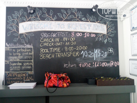 Можно много писать похвальных слов об Forest park, но хочется рассказать вам один случай. Он находится на окраине Кемера и обычно это уже конечный отель при расселении туристов. Через день куратор,от турагенства TUI, наведывал нас, интересовался качеством обслуживания , предлагал туры и т.д . Он приезжал всегда под вечер, объехав все остальные отели садился на диван на ресепшене вздыхал и говорил: "Хоть здесь отдохну от этих разбирательств. Меня уже надоело каждый день выеснять отношения с руководством отелей и постоянными жалобами туристов на плохое обслуживание. А здесь у вас гармония и спокойствие и я очень рад и благодарен за это хозяину гостиницы (немец ) и прекрасной управляющей, которая как заботливая хозяюшка всегда отзывчива и исполнительна." Стоит проверить ему , это действительно так.