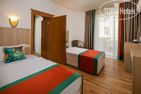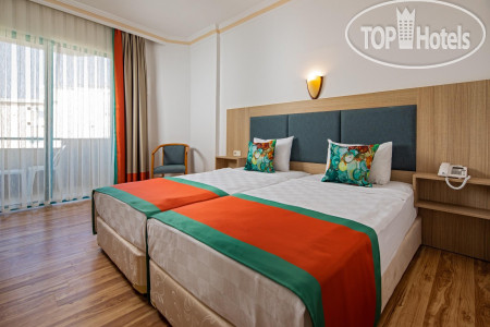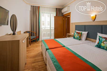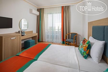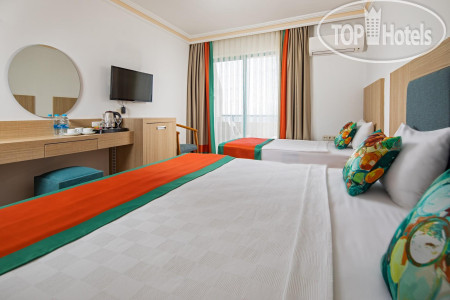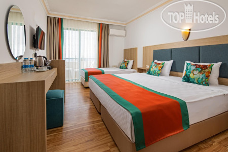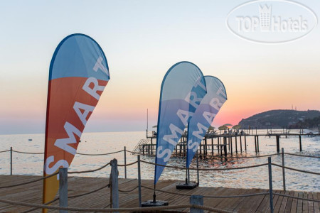 По еде: честно, НЕ вкусно, одни блюда совсем не соленые, другие блюда пересоленые, пресные, без приправ каких-либо, от слова совсем, каждый день одно и тоже, никакого разнообразия, иногда даже пахло тухлецой от овощей или блюд с йогуртом, так же от макарон, из мяса только курица и соевое мясо, рыба была, 2 раза форель, скумбрия и еще какая-то костлявая рыба. Я похудела на 2 кг за время отпуска даже. На баре так же пиво, нормальное, как во всех отелях. Вино красное и белое, все сухое, не вкусное, пить не возможно, водка, раки и джин. Коктейли никакие не делают, только если кола с водкой, либо джин с спрайтом. Чай, кофе только в автомате, турецкого кофе даже платного нет. Уборка столов это вообще просто кошмар. После людей, которые уже поели, подходят с совочком и щеткой и просто сметают, на этом все, уборка окончена...