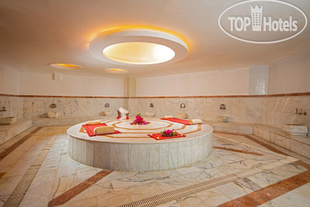 На цокольном этаже работал хамам и банька с легкой ненавязчивой музыкой и приятными работницами (хамам посещали в бесплатные вечерние часы-нам хватило , никто не приставал с навязчивыми услугами- в первый день при получении пляжных полотенец рассказали об их наличии и стоимости и все