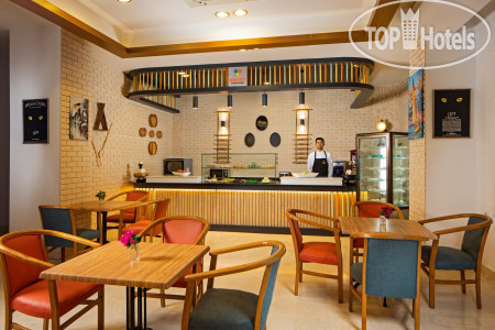 Сам отель небольшой, территория тоже небольшая, гулять по ней не где, очень много кошек, это стандартно, но в этом отеле им разрешают все, они спят на диванах на ресепшене, и ходят где хотят в принципе. От этого оооочень все пахнет, особенно утром, до того как все уберут. Не очень приятно.