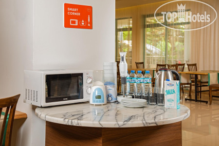 Начну с заселения, приехали мы в отель в 13:30, на ресепшене русскоговорящая женщина оформила нас, сказала отнести багаж в багажную комнату и идти кушать (обед до 14:00). Пообедали пока еще ничего не понимая, вкусно или нет, пошли на заселение. Номера с окнами на соседние отели, но это не смущало сильно. В принципе номера и мебель не старые, все чисто, в туалете в душевой были нюансы по плитке и сантехнике (ее виду),но нам это не сильно важно, все работает и хорошо. По уборке номеров : на нашем этаже(3 этаж) пришли убраться и все убрали и поменяли, а на 2 этаже убрали кое-как и ничего не поменяли, так запускали раза 2-3 и все было тоже самое, даже с учетом оставленных чаевых, поэтому не знаю что сказать, кому как повезет с уборкой, но все можно решить через ресепшен.