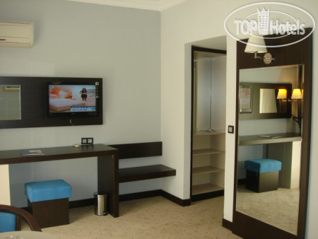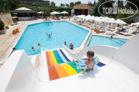 Нахожусь здесь 4 день. Начинаю привыкать к минусам. Их не мало. Заселение строго с 14, в первый номер зашла, на полку для багажа поставила сумку 3 кг. Полка рухнула. Попытка включить телевизор провалилась. Попросила поменять номер, без проблем, но такой же древний как и предыдущий. Вода в душе течёт из разных отверстий, кондиционер плюётся льдом, потом течь начинает.Для сведения, 126 и 207 лучше сразу отказаться. С людьми общалась, видимо есть номера после ремонта, где все хорошо. Вчера очередной треш. Бросила полотенца на пол, и мне их же разложили обратно, да ещё и лебедей навертели. Написала году, в ответ получила заверение, что сегодня все поменяют. Пока вечером сама не пошла на ресепшен, никто так и не пришёл. Меняют полотенца раз в три дня, как заявлено. Все остальное в отеле на троечку, четвёрку в прошлом веке получили, похоже. Спиртное как и везде в Турции. Пиво вкусное, вино не очень. Пиво в картонные стаканы наливают. По пляжу, новые современные лежаки, без матрасов. Очень неплохо. Море прекрасное, чистое. Обязательно спецобувь, сложный выход, когда даже маленькая волна. Не полого. Могли бы и на понтон разориться. Категория отдыхающих, в основном, 50+. Нет туалета, нормального душа. Обратно идешь, песок в обуви. Хоть и не далеко, но сильно некомфортно. Заключение, если уж совсем не привередливые, можете выбирать этот отель. При всем моем оптимизме, больше сюда никогда.