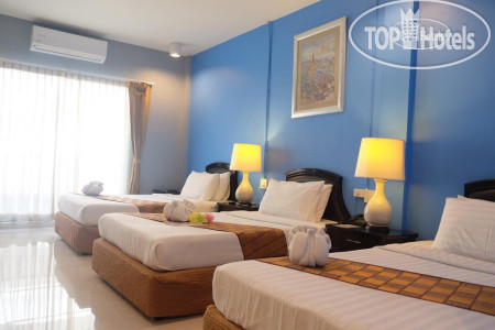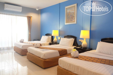 Прилетели в отель 15.02.2023, вернулись 28.02.2023. Заселение ровно в 14-00. Раньше не заселяют. Депозит 20$, но берут и в рублях и в батах. Отель для непритязательных туристов либо тех, кто хочет улететь в Тайланд дешево. На фото номер и завтрак (это абсолютно все, что есть на завтраке). Номер неплохой, чистый. Нет шкафа, только штанга с плечиками и небольшой комод. Два больших полотенца и маленькое для ног. Для душа-мыло, шампунь-кондиционер, гель для душа, ватные палочки, шапочка для душа.Холодильник нормальный, кондиционер тоже. Каждый день две бутылочки воды оставляют. Кровать жесткая. Недалеко от отеля есть обменник, курс ок 35 Батт за доллар. Также на улице, где расположен отель неплохой массажный салон ближе к пляжу (если идти в сторону пляжа, то слева). Цены - тайский массаж и массаж ног - 200 Батт, ойл массаж - 300 Батт. На пляж можно доехать на мини каре, который находится на территории отеля. Пляжные полотенца на ресепшен, залог -100 Батт/полотенце. Сотрудники отеля быстро решали возникающие проблемы и отвечали на вопросы, которые нас интересовали. За это им большое спасибо!