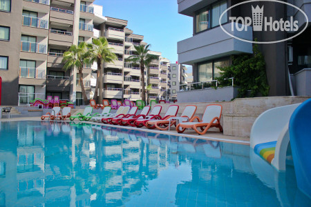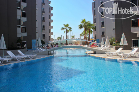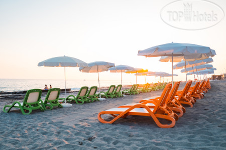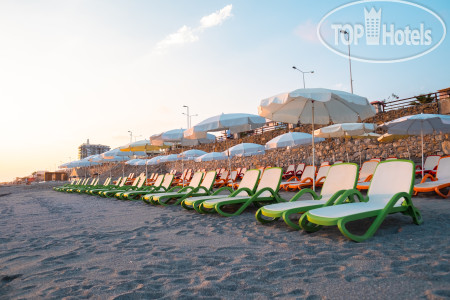 Заявленного бара на пляже как оказалось нет, пляж грязный, шезлонгов мало, заход в море ужасный,плита, во время нашего отдыха женщина сломала руку и ее прооперировали, мужчине наложили швы на лицо…чуть дальше можно заходить, место более менее норм, но пляжи повторюсь грязные, бычки мусор и тп…ездили на пляж Клеопатры на 1 автобусе за 50 лир около 1ч в пути, там красота песок и горы. ресторана Аля карт 1 посещения по предварительной записи тоже нет кстати.