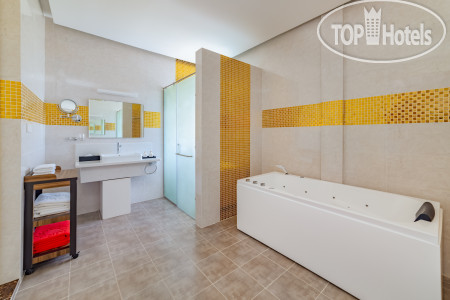 Номер светлый, уборная с двумя раковинами и ванной по центру, отдельно душевая и отдельно санузел. Уборка два раза в день-удобно. Вечером приходили и всегда чистенько , полотенца поменяны, кровать подготовлена ко сну! Мини-бар бесплатный, пополняли ежедневно ( пиво, соки, молоко, шоколад, газировка, чипсы). В номере все необходимое имеется , 4 халата ( детям тоже предоставили ), тапочки, все гигиенические принадлежности, пляжная сумка.