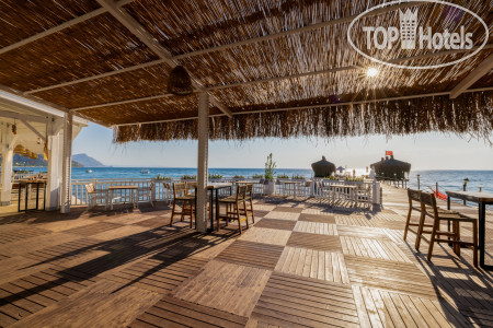 Огромным плюсом отеля является красивый вид на горы и огроменный по протяженности пляж, есть места для нелюбителей гальки, чисто песок!!! Очень вкусная и разнообразная еда. Особенно круто это 4 тематических алякарта с безлимитными проходками и без записи, а так же обед алякарт в бич ресторане! Алкоголь почти весь локал… неплохой, но не брендовый. Неплохая анимации, особенно детская. Аквапарк дня на 2-3 займет детей, горки норм. В целом территория убитая, реновация только на словах, сотый слой краски по всем поручням и кафелю битому в попытках придать ухоженность.