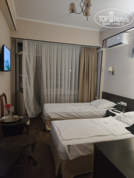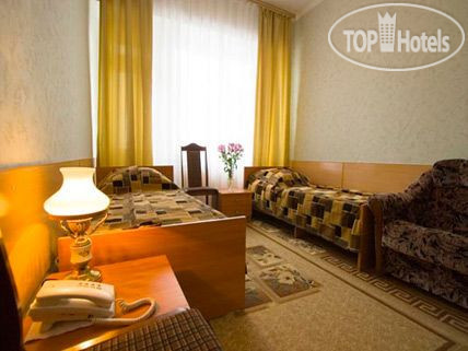 НОМЕР – 3-я категория: двери и косяки старенькие, но это не напрягает совсем (поверьте, жила по миру в 5*), санузел нормальный (металлический поддон со шторкой, зеркало), полотенцесушитель горячий, две 1-спальные кровати, 3 полотенца на 1 чел, кусок обычного мыла и туалет.бумага (всё). В шкафу запасные одеяла (отопление включают 14.10), 2 зеркала, холодильник, тумбочка, 2 стакана стеклянных с подносом, столик небольшой, ТВ старый каналов 5 примерно, 2 стула, настольная лампа. Розетка для меня неудобно расположена (езжу со своим удлинителем). На окне москитная сетка и плотные шторы. Не пугайтесь жуков, летят из леса, сидят только на окнах, люди их не интересуют. На балконе ничего нет (начиная с 3го этажа балконы).