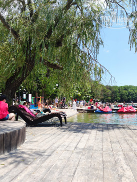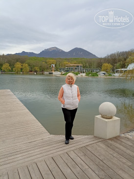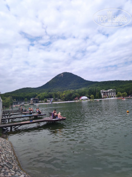 Рядом с санаторием есь источник, но он был закрыт на ремонт. По пути к озеру, обычно, обходили все источники, спускались по длинной лестнице. До обеда - загорали и плавали. После обеда снова возвращались на озеро. Вечером в санаторий возвращались на маршрутке или на такси. Цель была - отдохнуть, загореть, накупаться и не готовить. Нам понравилось. Чтобы оздоровиться, конечно, нужно ехать на 3-4 недели. В санатории много пожилых, есть вечерние дискотеки. В бассейн очень сложно попасть, желающих много.