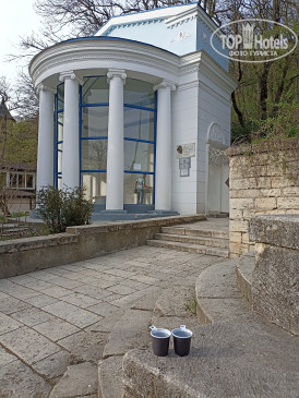 На 1 этаже - туалет, приемная директора, ресепшн, столовая, бювет со Славяновской минеральной водой, кинозал, дискотечный зал, холл, утренняя экскурсионная точка (Кисловодск-650руб, Пятигорск - 600руб, и другие: интересные, всегда с 14:00-18:00 – удобно, после процедур и обеда). Кофе-автомат, отдел с бижутерией и приезжие каждый день разные мини-торговые точки (начиная от духов, заканчивая дубленками). По переходу через 2ой этаж –в 2х эт. лечебный корпус.
