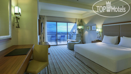 Номер: был обычный . Довольно просторный. Утюг, доска, весы. Как всегда в Хилтоне. Кровать не реально огромная. Наверное 2500 шириной. Подушки разные - на выбор. С водой проблем не было. Стояла всегда. Чай, кофе были, но не пользовались за не ненадобностью. Минибар пополняется. Сколько русских каналов не знаю. Не включали. Тапочки, халаты, шампунь, кондиционер, гель и крем - сколько угодно. Шапочка для душа и ватные диски - одноразово. Не очень удобные пузырьки под шампунями и т.д - не удобно выдавливаются много остаётся на выброс, если только не добавлять воду.
