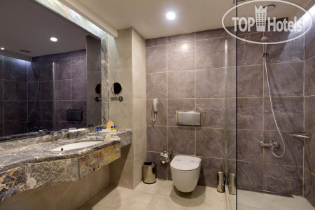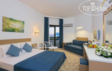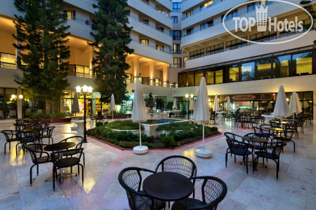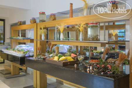 Рейс был ранний и в отеле оказались уже в 6,30. Зашли в главный холл и НИКОГО. Водитель автобуса (гида с нами не было) минут 5 бегал искал хоть кого нибудь. Потом появился на ресепшине чел и после заполнения бумажек пообещал номер к 11 часам. В итоге получили после 14.00, что странно. Особенность этих ресепшионистов (не всех) обещать и ничего не делать, с чем мы в последствии и столкнулись. Так как номеров свободных было много. Отель явно не горит желанием приветствовать своих гостей. Пока ждали завтрак немного рассмотрели холл. Впечатление запущенности, и грязи. В глаза не бросается, но если присмотреться, а унас было время, все эти пятна видны. Заодно прогулялись к морю. И БИНГО, тут то же самое. Засранные с вечера и не убранные столы и стулья после вечерних поседелок у бассейна и бара. В будущем грязь будет сопровождать в течении всей поездки. Пошли в 7 утра на завтрак, на первый взгляд ничем особым не отличался. Если не смотреть на плохо протёртые столы и условно чистые вилки с ножами. Удивило обилие пластиковой посуды. Те кто туда поедет "заклинаю", не пользоваться пластиком, требуйте стекло и сталь. Пластиковая посуда низкого качества, об острые края ложек вы или ваш ребёнок гарантированно порежет язык, вилка реально может сломаться и вы проглотите её кусок. А на пластиковых стаканах (куда по утру вы набираете свежий сок) на краях не снятый пластиковый облой. Я не завидую тем, кто это проглотит. Что касается вообще посуды: ГРЯЗНАЯ. Даже та, которую только, что помыли. Отель правда указывает, что год назад заменил посудомойки, видать не помогло. По поводу питания: фраза голодными не останетесь это сюда. Вроде всего много, но есть можно не всё. Любопытный факт: лимоны к чаю, если и найдёте, то не сразу, если они вообще будут. Блюд из огурцов и помидоров штук десять (резаные кружочком, соломкой, квадратиком, а затем то же самое перемешанное) и в конце столов вам ещё отдельно могут нарезать эти помидоры и огурцы. Спрашивается нахрена? Всё однообразно. Рыба на гриле просто пересушенная рыба. На один раз. Курятину и овощи на гриле можно есть. Остальные лепёшки не стал пробовать. Картошку на гриле сразу в помойку. В основном зале картина примерно такая же, многое в помойку, особенно борщ обильно заправленный уксусом. Сладкое, выбор есть, но не так чтобы уж сильный. Фрукты присутствуют. Дыни и арбузы были на последнем шаге перед помойкой. Виноград и яблоки были. Хотелось мандарин, но они были в минимальном количестве и сразу заканчивались. Примерно так будет везде, фразу "уже закончилось", вы будете слышать часто. Зато апельсинов море, но с настолько дубовой шкурой, что не расковыряешь. В последние дни октября и это "обилие" резко сократилось, многие уехали. В глаза бросается пофигизм официантов. Ко мне не надо подбегать предлагать что то, я хочу только сесть за чистый стол и пользовать чистой посудой. А не искать бегать вилки и стаканы.