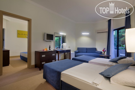 Что касается номера (жили в 3-х этажном корпусе): тут можно поставить 3. Вроде убрано, вроде после ремонта. Но реиновация не охватила всё, старая плитка в ванной выглядит удручающее. Да и сделано тяп ляп. Ужасная слышимость и запах канализации. Вы будете слышать орущую попсу 90-х с пляжа до 23,30, а потом храпящего соседа или его телевизор, после того как он нажрался и вернулся к себе в номер. Нахрена эти вечерние поседелки, если в отеле много отдыхает детей? Или там так же отдыхает много дядей и тётей, которым нужно нажраться вечером. Тогда зачем заявлять, что это семейный отель? Сейф, шампуни есть, вай фай работает. Чайник со следами ржавчины и не желает работать. Как и в столовой: не останешься голодным, так и тут: жить можно.