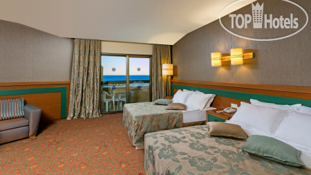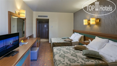 Номера в принципе не плохие, по уборке ощущение, что приходили только "покрывало" поправляли и все. Пыль не убирали и если пылесос или, то наверное 1 или 2 раза за неделю. Питание на жирную 2, одни макароны (от которых до сих пор тошнит), никакого разнообразие. Если было что-то мясное, то на вкус прям на большого любителя. Много салатов, но именно чтобы поесть и наесться - забудьте. Специй фигачат оооочень много. Картошка фри была только 2 раза (в баре у бассейна). Ресторан, который должен был работать весь период -НЕ РАБОТАЛ ВООБЩЕ, один сказал что уже конец сезона, поэтому не работает, а другой сказал что он вообще не работал с начала сезона🤦Каждый день в баре были наггетсы рыбные (одно из нескольких блюд, которые ели дети). В соседнем корпусе, были большие горки, но если вы туда хотите пойти, то надо платить... И там в баре было больше выбора из еды и каждый день можно было сделать бургеры и съесть картошку фри.