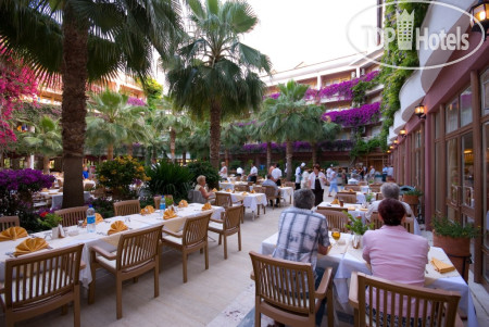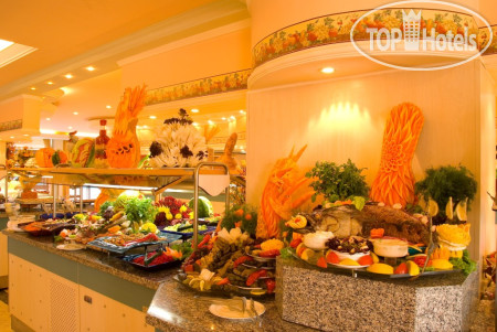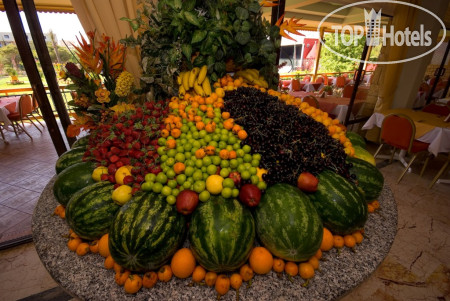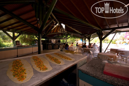 Бар только один у большого бассейна и во время обеда и ужина бар в ресторане. Вино вполне нормальное, есть белое, красное, розовое. Есть и другие напитки, алкогольные и безалкогольные. Однажды в ресторане не было белого вина, ходили за ним в бар у бассейна. Питание, конечно, - не огромное разнообразие, но это и 4*, но все-таки хотя бы этот минимум можно было сделать вкусным…. Начиная от ледяной глазуньи на завтрак и котлет/фрикаделек на обед и ужин, которые невозможно есть, даже кошки отказывались. На обед обычно из съедобного было одно мясное блюдо: идейка с овощами, растушенные говяжьи мослы (что-то вроде оссобуко), один раз были вкусные кёфте, курица с овощами вообще не разжевать. На ужин всегда что-то на гриле. Один раз были несъедобные котлеты из заморозки, один раз скумбрия стейками, не разжевать. В остальные дни что-то вкусное, маленькие птички (перепелки?), рыба типа речной форели, курица (иди индейка?) сочная, наверно бедра без кости. Однажды была очевидно Турецкая ночь, делали шаурму из курицы (просто мякоть, без лаваша), лосось гриль, все очень вкусно, но вечером была обычная дискотека, без праздничных выступлений. Еще была пару раз красная рыба на холодных закусках, не знаю, как можно ее сделать такой сухой(((. Но ее быстро разобрали и больше не выносили. Вообще блюда всегда выносили и все было до закрытия ресторана. В 21.00 не выгоняли, ждали, пока люди доедят. На обед и ужин было несколько салатов, но из съедобного раза 3 был салат из шпината и раза 3 грибы жареные с лучком, остальное с этим безумным майонезом. Много просто разной травы и овощей, оливки-маслины. На завтрак глазунья, под конец начали жарить прямо на раздаче, хоть горячая. Яйцо вареное, сосиски, припущенные овощи, омлет иногда, менемен невкусный, оливки. И всегда огромный выбор сыров!!!!!!!!! И немного колбас, но они невкусные. На обед и ужин всегда огромное количество пирожных (не едим) и несколько видов пахлавы (очень вкусно, но практически без орехов). Несколько раз попадались волосы(((