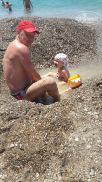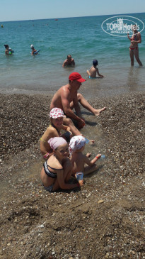 Сразу самый большой для нас минус - МОРЕ!!! Спасибо тем, кто писал про мелкую гальку(((( Галька с перепелиное яйцо совсем не мелкая и для таких как я, не умеющих плавать и обычно нежащихся на мелководье - совершенно не вариант. Мало того, что достаточно крупная галька, еще и через пару метров проваливаешься в нее по шею (я 160см), т.к. она рыхлая и сразу глубина. Выйти из моря самостоятельно практически невозможно, если еще и волны, то здоровые мужики выкарабкиваются с трудом, неэлегантно)). Мой муж, любитель плавать до буйков, сплавал пару раз, сказал, не нравится, сильно сносит, кроме волн еще и течение подальше от берега.