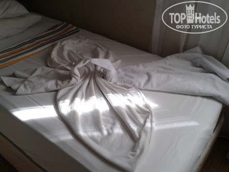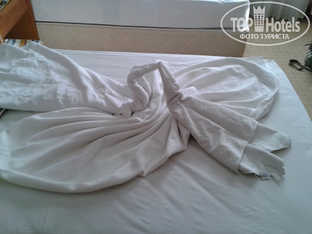 А отель приехали в 10 утра, нам сразу одели браслеты и отправили на завтрак. Заселили после 12 часов, было приятно, что не пришлось ждать до 14 часов. В номер принесли комплимент - бутылочку вина. Т.к. были повторно в сети отелей.