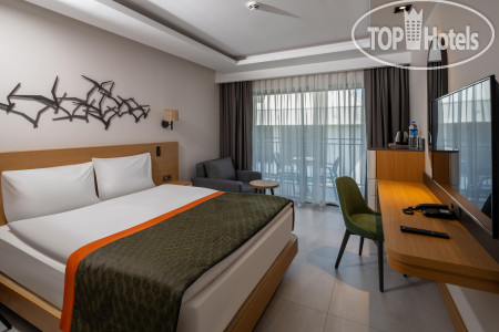 Отдыхали с ребенком 13 лет в отеле с 13 по 20 октября. В Турции были более 10 раз, но этот отель просто супер! Начну с номера, у нас был забронирован старый корпус, поэтому тут вопросов нет, все ожидаемо, старенький номер, но с прекрасным видом на горы! Питание на отлично, фруктов много, все свежее, напитки импортного производства, вкусные коктейли, мороженое. В ресторане всегда были места, официанты подходят предлагают напитки. Аквапарк по расписанию, проблем с плюшками не было, всегда были свободные. Море прозрачное, пирс шикарный, бассейны чистые! Ходили вечером в хамам и бани. Сам отель стильный, красивый, везде чистота! Однозначно рекомендую этот отель!!!