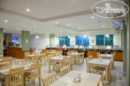 Завтраки хорошие. Если не выеживаться - можно на завтраке наедаться на весь день и вообще больше ничего не закупать. Там всегда есть курица (бывает испорчена избытком кари) или фарш свиной (чили надо выискивать в нем и отодвигать), к которому можно добавить рис или лапшу и натрескаться на весь день. Но это безобразие в 10-00 завершают, чем вынуждают большинство бродить по кафехам. Еще булочки есть, чай (из тряпочки) и кофе (норм) с молоком горячим. А самое главное есть арбуз и ананас - сладкие, вкусные. Папайя еще есть - на любителя. Из фруктов это все. Причем мест для фруктов 2, а видов фруктов 3 - пока не освободится один из 2 разносов 3й фрукт отсутствует - странный вид экономии.