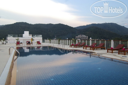 В коридорчике шкаф-вешалка с плечиками, выдвижной ящик, холодильник, чайник, фен. Сан узел с застекленным душем, плитка новая, полотенца белоснежные. Ходить слегка далековато, но мы же спортики и очень тихо в номере, уютно, решили не менять. На рецепшене нам выдали 2 ключ-карты и мы одну оставляли в приемнике, чтоб кондиционер охлаждал. Нас подвезли на гольф-каре с чемоданами до входа в 5 корпус. Залог просили 1000батт, можно в долларах. Уставшие, но довольные пошли опробовать бассейн на крыше 2 корпуса, над рецепшеном. Бассейн небольшой, но достаточно глубокий и чистый. С крыши открывается хороший вид на Карон, на Будду, есть шезлонги, можно почилить. Покупались в бассейне, очень приятно после длительного перелета, расслабились. Нам все в отеле понравилось.