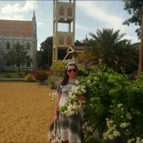 здорово смотрятся вазоны с лотосами, цветочные бусы, композиции из сложенных листьев в ввиде веера. Особо удивила ступа-печь ,в которой взрывают петарды, чтобы поблагодарить духов. Китайцы постоянно к ней подходят с коробочками и подношениями. В величественной пагоде находится осколок кости Будды, реликвия для буддистов. Пагода украшена сложными настенными росписями из жизни Будды. Внутри пагоды очень много золотых статуй Будды, все отделано мрамором, украшено цветами. На территории комплекса много разноцветных орхидей, растущих на деревьях в кашпо из кокоса. Они очень пышные, как и вся растительность на острове. Но открытых участках комплекса было очень жарко, когда выходило солнце, оно просто жгло. Далее по маршруту у нас был Олд Пхукет Таун. Старый город -это оживленный район с китайско-португальскими таунхаусами, выкрашенными в яркие цвета. Старинные, хорошо сохранившиеся домики расположены вдоль переулка Роммани. Весь район-сплошной рынок и кафешки. Есть китайские магазинчики, кафе, украшенные красными фонариками. Есть несколько локаций для фото-стена цветов, граффити. Для Азии необычно, но очень жарко, растительности нет. Быстренько, с ветерком, поехали на смотровую Као Ранг, с которой открывается потрясающий вид. Есть необычная, белая беседка, играет релаксирующая музыка. Полюбовались видами. Посмотрели на почти ручных обезьян, которые живут там возле ресторанов. По обезьянам уже видно, что их перекармливают вкусняшками, ожирение у них. И вдруг мы понимаем, что телефон с навигатором намок и разрядился, вот проблемка. Стало страшновато, т.к. дело было к вечеру, смеркалось, живность активизировалась)))Я спросила мужа -как же мы найдем дорогу?,а он: -по компасу на айфоне? чтоооооооо?, а он мне - мы на горе, значит сейчас определим азимут и вперед; Я удивилась конечно, но подумала, хорошо, что мужчины умеют находить дорогу по компасу и по звездам...Сели на байк, спустились с горы и у подножия увидели красивые статуи и храм. Это был Ват Кхао Ранг. Храм с необычайной красоты архитектурой, обилием цветов, статуй и высокой лестницей. К храму ведут крутые ступеньки, по бокам которых возлегают две огромных зеленых змеи, Наги. Наги в буддизме символизируют мудрость. Вход в храм украшают демоны якшасы, полубожества и великаны. Храм возвел монах Луанг По, которому 119 лет и он является самым долгоживущим монахом на всей земле. Место мистическое, вся обстановка наводит на мысли о духовной составляющей нашей жизни. Сам храм украшен замысловатымии росписями, очень красивый внутри. Атмосфера в храме