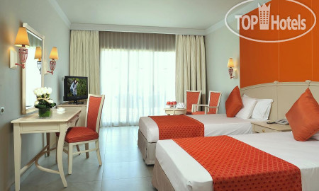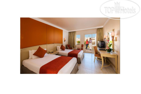Добрый день! В отель приехали поздно вечером! Нас сразу заселили. На машинке с чемоданами отвезли в номер! Нас трое человек взрослых, но кроватей было всего две! Нам принесли раскладушку, т.к. мы были с дороги и очень устали, то мы согласились на это. Утром в 9-30ч была встреча с гидом Библио Глобус, Сан Интернешнл. Это встреча просто какой то кошмар! Гид по имени Мохамед (лысый тип такой) просто всех достал со своими экскурсиями. Встреча была сразу двух отелей Спорт и Фронт. Люди кто не первый раз за границей, сразу ушли не стали слушать его навязывание и уговаривание экскурсий. Мы два часа слушали его. И он говорил только про впечатления, которые должны у нас остаться, т.е. заказать у него экскурсии, запугивал нас страховками, которых якобы нет у других агентств. Полный бред!!! Хорошо! Мы взяли у него экскурсию Сафари. В итоге я сильно заболела и отказывалась за сутки. У меня была температура высокая и я реально не могла ехать. Деньги он не вернул. Так я потеряла 55 долларов. Обещал комфортабельные автобусы, ничего такого не было. Всё обман. На яхту нас повезли на какой то тарантайке, мы думали не доедем. Ужас! Про страховку ничего ни слова, про доктора тоже ни слова. Короче говоря, не место ему работать гидом!!! Советую взять экскурсии в другом агентстве {удалено модератором: несанкционированная реклама} Отель понравился, дискотека каждый вечер возле ресторана, анимация вечерняя, на пляж ездили всегда на автобусе, он каждые 10 минут. Жили возле спортзала, недалеко конюшня, ходили кормить лошадок. Есть и занятия и прогулки. Надо узнавать на ресепшен. Питание хорошее, но как и везде в отелях повторяется каждую неделю. Манго было на ужин через день, просто шикарное спелое! И недалеко от отеля как идти на площадь Сохо есть Маркет магазинчик, там купили манго домой и сок. А так отдых понравился, в итоге нас переселили в обед в номер с тремя кроватями, шикарный!