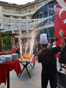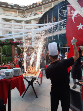 А теперь о грустном: единственный неплохо говорящий по-русски сотрудник - Эюп очень обиделся, что я не дала ему чаевых, когда он привез нам чемоданы в комнату (хотя мы его об этом не просили, он буквально догнал нас и из рук выдернул их, а не оставила я ему чаевые, потому что тупо забыла сделать размен в России и у меня меньше 100 долларов реально не было), так он после этого сразу разучился говорить по-русски, и когда бы мы что не спросили - отворачивался и говорил: Я тебя не понимаю...Но это бы я пережила, если бы не финт, который он выкинул в день нашего отъезда! А именно, вылет у нас был поздний, а освободить номер надо в 12 часов, что мы и сделали, сдали ключи на рецепшене, а чемоданы хотели отдать в камеру хранения, но он сказал, что камера хранения переполнена, поставьте рядом, мы тут следим. Действительно у камеры стояло уже много чемоданов и я оставила, как мне сказали. Ушла минут на 20-ть на обед, возвращаюсь -чемоданов нет!!! Спрашиваю - где мои чемоданы? Отвечает -не знаю, я не видел! Как не видел? Вот так, говорит, не видел, иди ищи, может кто перепутал и забрал. Я понимая, что он всё ещё не может мне простить чаевые в первый день, говорю: ладно,пошутил и хватит, давай чемоданы, а в ответ:"Я тебя не понимаю"... Так продолжалось минут 10, я начала бычиться, позвонила своему гиду (спаисбо ей большое-зовут Лариса), она с ним долго о чем -то говорила, он ей тоже самое...Короче, хотел отжать бабла. В результате пока Лариса не пригрозила ему, что пожалуется кому-то там..., он с места не сдвинулся! А теперь уже я принципиально не хотела оставлять этому гаду чаевые! В результате он вывез их мне из какой-то подсобки. Ну вы понимаете моё настроение в последний день,да? Всё впечатление об отеле и отдыхе перечёркнуто одним днём, точнее, одним козлом!