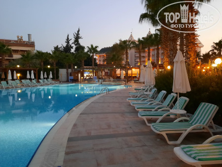 Кормили нормально, я, чессговоря, никогда не понимаю тех, кто пишет в отзывах, что есть было нечего...Я бывала в Турции в разных отелях, от 3* до 5* и не припомню, чтобы кто-то где-то остался голодным при шведском-то столе! По-моему, это людская блажь! Единственное, чего мне всегда не хватало - это творога и его производных: сырники, запеканки и т.д. Я без этого свой завтрак не представляю(( Из алкоголя вино красное и белое, вполне так себе ничего, но только сухое. А вот пиво, канеш, х..ня полная! Так, освежиться если только, пьешь, пьешь, и ни в одном глазу, тока пузо раздувается. Одним словом -вода, подкрашенная цветом пива. Коктейли вечером в баре из той же оперы - компоты...