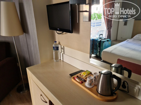 Была в отеле 10 дней в августе 2018г. вместе с сыном 9 лет от Пегаса. Приехали около 7 утра, номеров не было, отправили нас на завтрак, к 10-ти заселили в номер 1111. Номер без наворотов, но они нам и не нужны были, мы туда практически только поспать приходили. Единственное, с чем столкнулась впервые за границей- отсутствие в ванной комнате бальзама для волос, шампуня, лосьона для тела, тапочек и халатов. В дозаторе в ванной универсальная жидкость а-ля гель для душа/шампунь 2 в 1-ом. А вот фен, напротив, порадовал, обычно везде еле дуют, всегда с собой свой привожу, а тут нормально дул, зря тащила в этот раз)