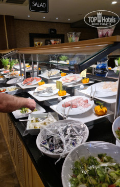 Неудобный график питания для ужина: завтрак с 7.30 до 10.00 (потом до 10.30 поздний завтрак, что фактически тот же самый завтрак). Т.е. на завтрак времени хватает всем, чтобы спокойно поесть и освободить столики другим. Обед идет только 2 часа: 12.30-14.30. Но обедать можно и в баре у бассейна, и в баре на пляже. Кто-то совсем не обедает, так что ажиотажа в ресторане отеля в обед нет. А вот ужин – все по-другому. Он длится также лишь 2 часа: 18.30-20.30, единовременно в ресторане скапливается весь отель, народу много, и все столики занимают сразу, уже в 18.30. В итоге опоздавшим сесть просто негде. Несколько раз мы подолгу ждали, пока освободится свободный столик, брали стулья от других столов. Так что проще приходить уже к 19.30-20.00, когда успела поужинать первая партия туристов.