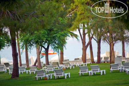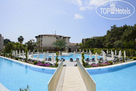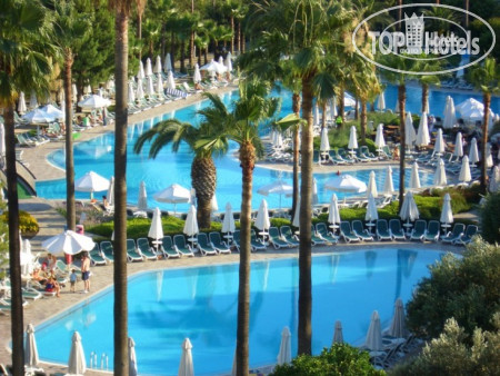 Начну с плюсов, заселение произошло сразу,как только мы приехали в отель, часов в 12 дня,заполнили небольшую анкету,вручили термоски для воды и вперед в номер. Номера в отеле хорошие, замечаний нет, ну разве что нет кондицинера для волос,что очень неудобно,в первый раз такое встречаю, голову помоешь, а расчесать проблема.Поэтому берите из дома,если кто в этом нуждается. Полотенца,бельё-всё свежее,хорошего качества,зубных принадлежностей тоже нет,что удивило, в холодильнике пиво,кола,фанта,два вида соков и пиво, что-нибудь погрызть-отсутствует)), вид из номера у нас был конечно неудачный, крыша кухни. Питание отличное,придраться не к чему, повара стараются,официанты молодцы,быстро убирают и хорошо обслуживают,вежливые и приятные ребята. Территория отеля красивая,правда мы были-сентябрь-октябрь,уже появилась пожухлая листва,отель утопает в зелени.Контингент -пожилые пары немцы (в основном) и англичане,поляки, русских туристов мало, также семьи с маленькими детьми.Пляж небольшой,песочек,из-за которого море мутное, и что самое ужасное это скалистые каменные участки в море,которых не видно из-за песка. Это самый большой минус отелей Сиде, мы не знали,иначе бы не поехали конечно,я там чуть не убилась, волны большие,тебя сметает силой на эту подводную скалу ,это кошмар,а так называемые спасатели ничего не делают,сидят и кофе пьют, хотя при таких нюансах нужно быть внимательнее к туристам, находящимся в море при таких больших волнах. И ещё,что неприятно было,я предупредила заранее службу работы с гостями,что у меня ДР, записали, обещали принести в номер фрукты и шампанское,ну и ресторан а-ля карт,хотя он и так бесплатный,вернее оплачен с туром,в итоге в номер так ничего и не принесли,мы не из пьющих от слова совсем,поэтому как бы шампанское нам и не нужно,но то,что так отнеслись - неприятно! В этот отель не вернемся,так как для нас имеет большое значение море, но, к сожалению, скалистые участки в море -это не для нас!