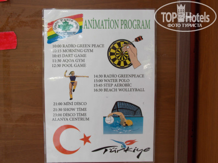 По питанию, все супер! Однажды была в 5 звездочном отеле и там из мяса были только куриные спинки, за которыми еще нужно отстоять в очереди)) здесь мясо в чистом виде было всегда, практически через день была рыба. Много свежей зелени, супы мне все нравились по вкусу. Из фруктов в основном арбуз и дыня, иногда яблоки, и иногда на завтрак были нарезанные апельсины. Десерты намного однотипные, мне они и не нужны. Официанты молодцы, работают быстро. Еду пополняют до самого окончания обеда или ужина, приходить к открытию не обязательно, потом так же все есть, но нет очереди. Из напитков : пиво( вкусное), вино белое и красное сухое( тоже норм), джин тоник, водка и раки. Соки хорошие, не порошковые. Наливают в стекло, что огромный плюс для 3 *. Только на пляж пиво наливают в пластмассовый стакан. Анимации практически нет, и вообще отель подходит для тихого спокойного отдыха. В общем отель однозначно рекомендую! ✅ А про вай фай забыла, он есть, бесплатный. Не самый хороший конечно, самый лучший сигнал в баре возле бассейна, спокойно грузила видео и инсту и тик ток.