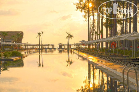 Пройдя впервые по территории мы утвердились в том, что сделали правильный выбор отеля. Белые домики, сосны, пальмы, газоны, клумбы, бассейны с нетипичной и красивой плиткой, пирсы. Территория, по которой так приятно гулять, что будет не жаль если поселят в номер чуть дальше от ресепшена/пляжа/ресторана.