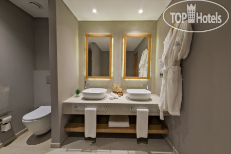 Сам номер небольшой, но вполне эргономичный. Двуспальная кровать с удобным матрасом и подушками, софа, которая может быть дополнительным спальным местом (только не для высоких), телевизор (им не пользовались, но нам сказали, что есть русскоязычные каналы), кондиционер, мини бар с соком, водой, минералкой, пивом и газировками, шкаф с вешалками, сейфом и полками, чайник с пакетироваными кофе и чаем, душевая с лейкой и тропическим душем, мойка (для кого-то может низковата), туалет с биде, также есть фен, полотенца и мыло/шампунь/бальзам/гель/лосьон.