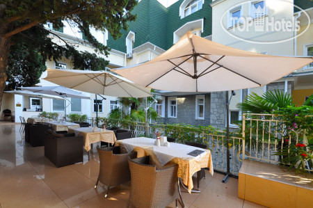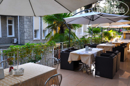 Основное для нас было преимущество - расположение. Самое начало приморского парка. 5 минут - и ты уже любуешься морем и вдыхаешь аромат вековых деревьев, пьешь вкусный кофе под шум прибоя.