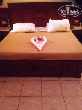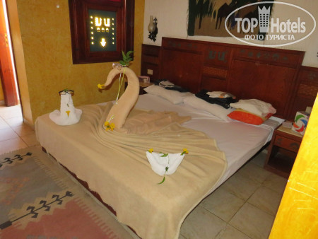 Когда зашли в номер были шокированы, унитаз и ванна это что то с чем то, антисанитария полная, все ржавое, отлетает краска с ванны, кондиционер не тянет, душно не возможно,в номере какая то кухня стоит вся грязная , ржавая , пыльная, и чья то недопитая бутылка воды, думаю как же мы будем проживать здесь 13 дней. Пошла просить чтобы поменяли номер, он оказался еще хуже, там вообще в туалете с потолка вода лилась. На ночь остались в первом номере, к обеду на следующий день поменяли номер, более менее где можно было бы существовать )одели браслеты, оказалось что они всё таки есть. Номер убрали один раз за наши 13 дней, постоянно приходилось ловить уборщика чтобы менять полотенца и хотя бы брать туалетную бумагу, но это тоже всего получилось раз три, за 13 дней. Еда вкусная но выбора практически нет, все быстро заканчивается, соответственно больше не жарят, не добавляют. Из фруктов была дыня, но только пару раз она была сладкая, а так просто вода, был пару раз арбуз, в основном финики, виноград, апельсин. На ужине стараются развлекать отдыхающих , делают шоу, приглашают танцоров.На баре есть водка, ром, виски, текила, фанта, спрайт, пепси