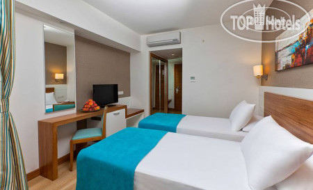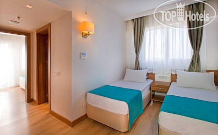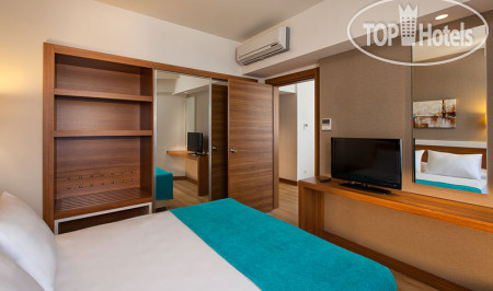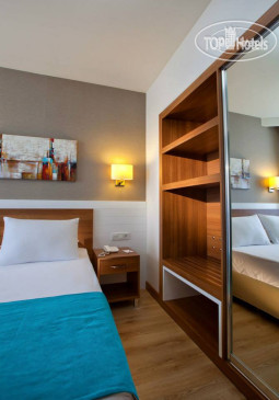 Заселение. Первое впечатление об отеле создается по входной группе , холлу. Здесь нас ничего не впечатлило. Холл узкий. Девушка на ресепшен предупредила , что у нас номер стандарт. Все стандарты без балкона и маленькие - 22 кв. м. Визуально я это представить не смогла, поэтому решили заселиться и посмотреть. Номер стандарт нам дали в главном корпусе на 9 этаже с видом на море. Носильщик налил нам шампанского и вперед. Мы увидели наш стандарт , сразу поняли , что жить в нем не сможем. Он не маленький, он крошечный даже для двух человек. Учитывая, что у нас еще доп место, встать негде. Таких маленьких стандартов я не видела ни в одной стране. С доплатой в 300 $ поменяли на шикарный фемели. В корпусе А на 9 этаже с видом на все : город , море, территорию нашего отеля. Вообщем , если вы привыкли к чуть более комфортным условиям , лучше брать фемели. Фемели здесь тоже разные. Я поняла , что в дальних корпусах попроще. Уборка номера отличная. Полотенца меняли каждый день. Гель находился в специальных дозаторах.
